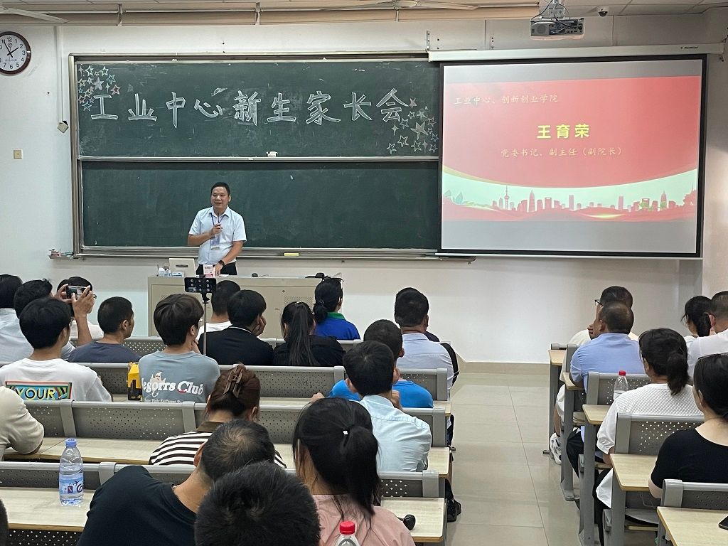 “家校共育,立德树人”,为进一步加强学校与家长之间的密切联系,帮助新生迈好开学第一步,帮助家长优化教育理念,9月9日,工业中心、创新创业学院在东C103召开新生家长会。中心党委书记王育荣、主任丁文政、党委副书记副院长石贵舟、副主任刘树青、副主任李佩娟,新生班主任和全体辅导员以及新生家长参加会议。家长会由副书记石贵舟主持。2023级新生家长一百多人参加了家长会。