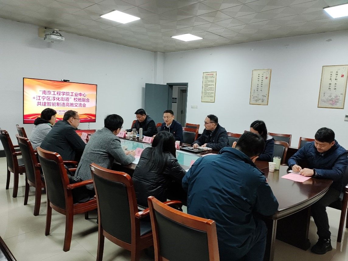 在座谈会上,工业中心党委书记张亮向淳化街道介绍了我校与江宁区共建校地融合发展示范区,以及中心根据学校“登峰计划”要求,正推进“十大一流工程”相关建设情况。他指出高校的科技、人才以及创新资源对地方的高质量发展具有非常重要的支撑作用,工业中心拥有一流的科研和实训平台,特别是智能制造方向与淳化街道的发展重点高度契合,希望双方通过党建引领,不断解放思想和创新机制,实现政校企在人才链、教育链、产业链、创新链的全方位融合和有效衔接,形成校地双向奔赴、双向赋能。工业中心主任黄家才向来宾详细介绍了工业中心的发展历史、发展现状、专业建设、学科建设与科研平台、学生工作等方面情况,提出双方可以在多个方面进行深入合作。工业中心党委副书记石贵舟就党团共建、高企申报、项目合作、人才培训和大学生实践等方面进行了交流。淳化街道党工委副书记、办事处主任何华表示,高校的科技创新和人才优势对淳化街道的高质量发展弥足珍贵,高端制造业是街道发展的重点,双方合作潜力巨大,发展前景广阔,希望双方精准对接产业发展需要,加强平台载体共建,实现优势互补。