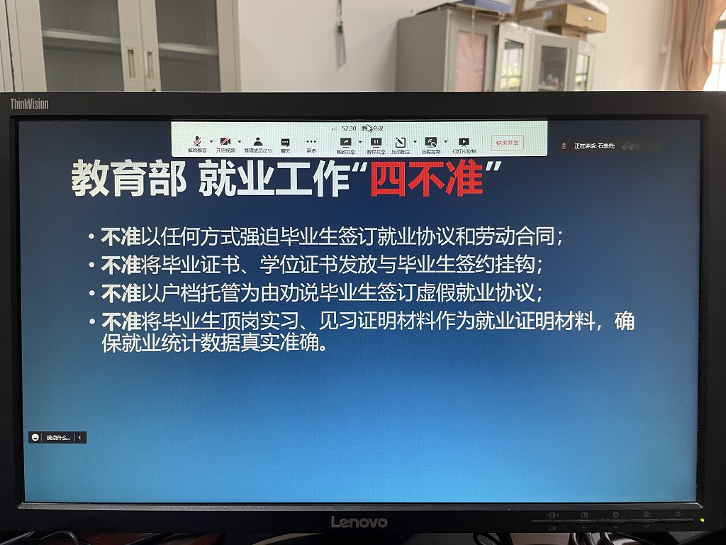 4月14日上午9点,工业中心召开2022届毕业生就业工作线上推进会。中心党政负责人、毕业班主任、辅导员、各教研室和分中心主任参加了会议。会议认真分析了当前新冠疫情对毕业生就业的影响,研究了外部就业环境和内部就业动力两方面的优势和劣势,指明了工业中心近期就业工作的要点,提出了一系列稳就业、保就业的措施。