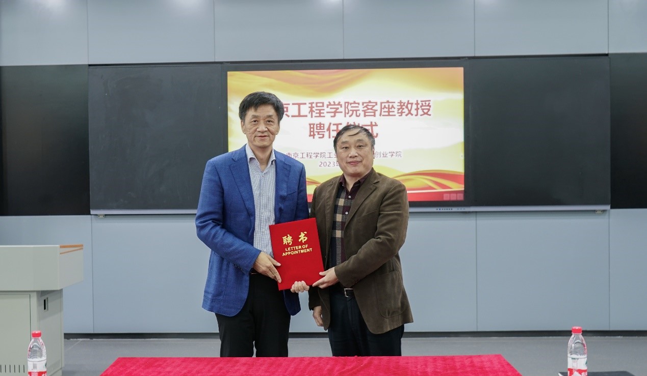 3月29日下午,我校在创新创业学院报告厅举行聘任仪式,西门子(南京)数控有限公司杨永忠副总经理受聘为我校客座教授。校党委副书记、校长史金飞教授为杨永忠副总经理颁发聘书并讲话。