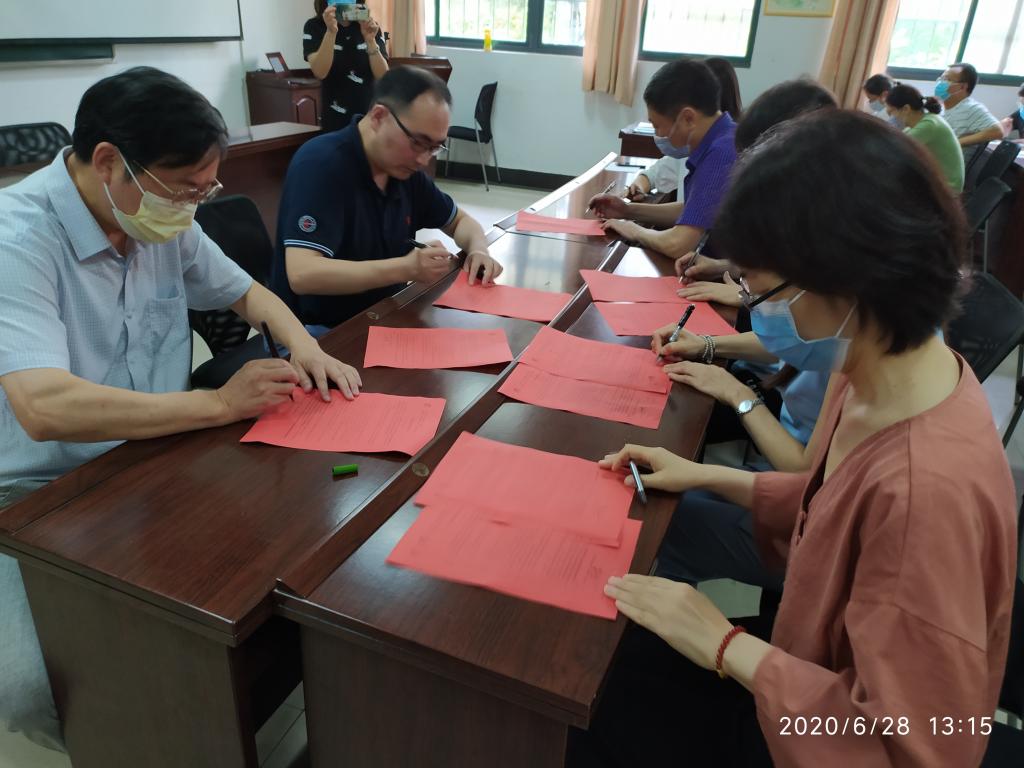 6月28日下午,工业中心在基础实验楼B114会议室隆重举行2020年度目标责任书暨党风廉政建设责任书签订仪式,中心领导班子成员及全体教职工参加了会议,中心党总支书记周明虎主持了会议。