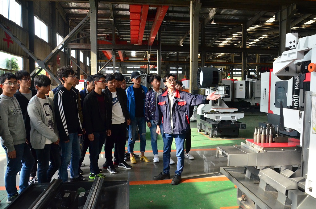 四家企业均为工业中心校外实习实践基地和毕业生就业基地,与我校在人才培养、科学研究、产品开发等多领域有长期稳定合作关系,在校内建有联合实验室。下午13:00,6辆大巴车从学校出发开向四家企业,中心2017级各班第二班主任随行。D数加工171班同学来到位于六合瓜埠镇的南京颖元科技有限公司,这是一家生产精密机械、数控机床及配套设备、电子设备及其零部件的台资企业,年产值超过亿元。在这里能够看到完整的数控机床生产过程。同学们分组参观了工厂生产和管理的各个环节,聆听了企业技术员对数控设备关键部件和技术的详细讲解,与企业技术员进行了较为深入地交流。随行第二班主任,工业中心主任郁汉琪老师全程与学生一起参观,并与企业负责人商议进一步合作事宜。在西门子数控公司,D自集成172班的师生参观了西门子公司smt生产线,得到企业员工耐心细致的讲解。西门子数控现代精益生产管理的理念和模式,形成的精益管理企业文化给师生留下深刻印象。其他班级分参观了康尼公司和埃斯顿自动化公司。