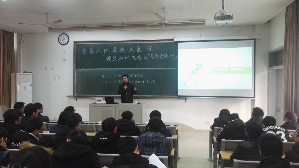首场讲座由南医大附属逸夫医院眼科主任张为中主讲。讲座的题目是《眼科常见病的预防及治疗》,他围绕“眼睛为什么能看得见?”、“眼睛如何能看的更美?”以及“眼睛出现问题了怎么办?”等三个方面进行讲述,还就学生关心的“要不要戴美瞳”、“戴框架眼镜和隐形眼镜的利弊”以及“如何正确地用眼、护眼”等问题进行的互动交流。第二场讲座由东南大学体育系副教授姜伟新主讲,讲座的题目《运动处方 健康钥匙》。他认为,现代医学知识的共识:科学的运动加上合理的营养是拥有健康的基石,药物起的是辅助作用。针对快节奏的现代生活,如何科学地进行运动,他开出了要进行有氧运动、力量运动及柔韧运动等三大处方并讲述了它们之间的关系。讲座中,他还请学生上台进行演示并就学生关心的问题进行了互动。