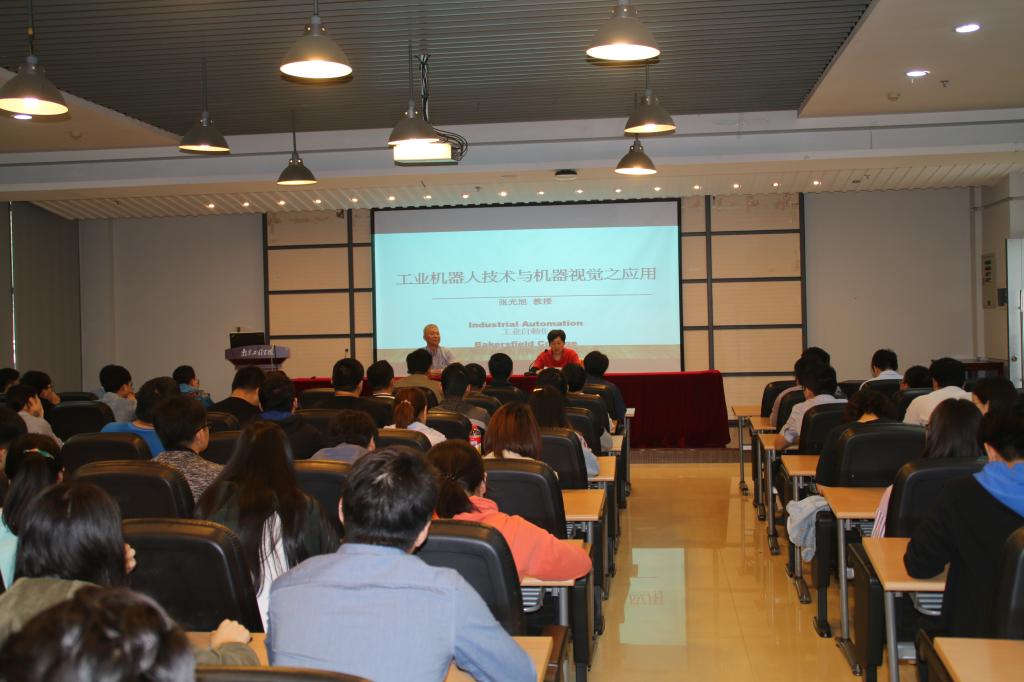 5月21日,应工业中心邀请,美国加州贝克斯菲尔特学院张光旭教授在我校行政楼一楼学术报告厅为我校师生做了题为“工业机器人与机器视觉之应用”的学术报告。报告会由曹雪虹副院长主持。