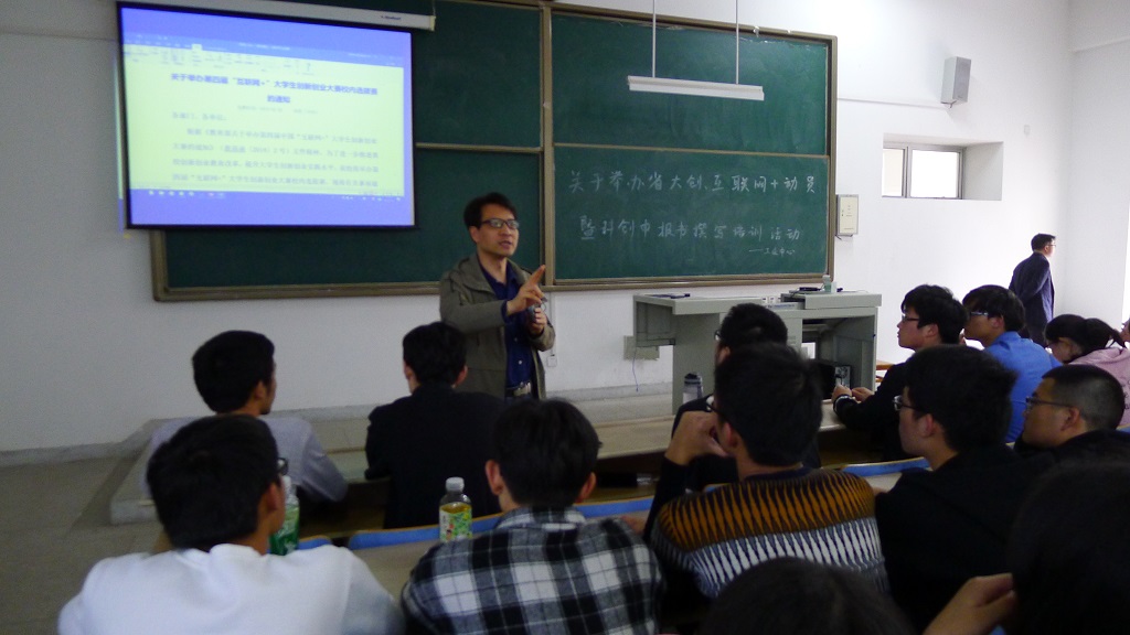 3月28日下午4点,2018年省大创、互联网+竞赛动员暨科创申报书撰写培训活动在创新学院6号楼211召开。活动由工业中心党总支副书记王灿、创新学院副院长陈巍、创新学院张军老师参加了活动,两百多名学生参加。