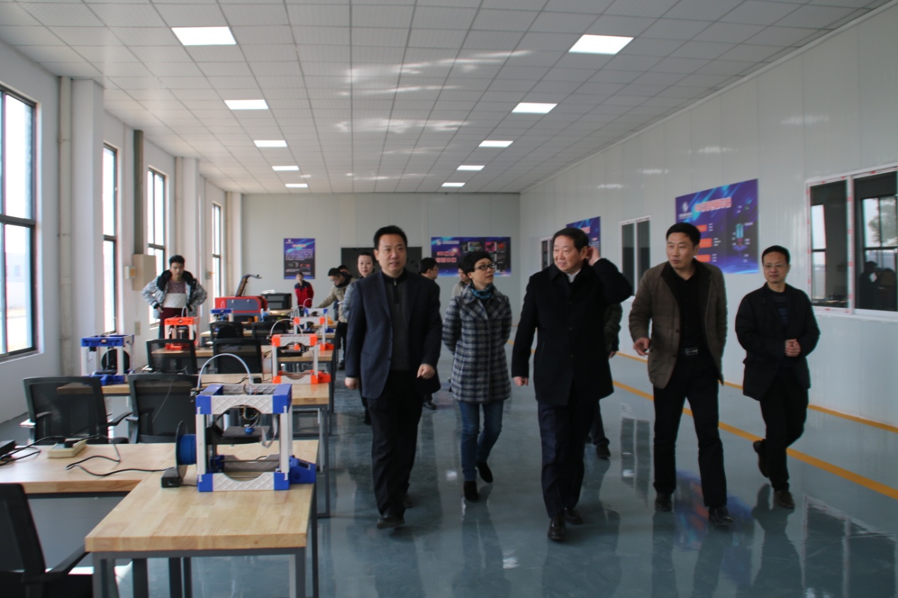 考察期间,左市长在机器人的引导下步入基地中试区,殷埝生副主任详细介绍了我校的历史、工业中心(创新学院)基本情况、研究院团队情况和目前与博望区多家企业的在研项目以及3D打印创新中心。左市长不时驻足停留,详细询问与区政府的合作进展和发展规划,对研究院目前的成果做了充分肯定。