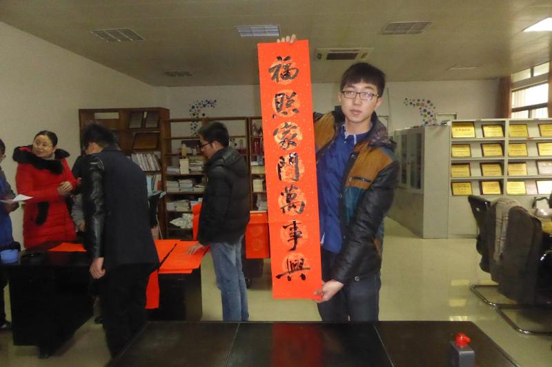 工业中心成功举办新春“春联汇”活动。1月13日下午1点半,工业中心团总支在B108举办了写春联,送祝福的“春联汇"活动。春联又名对联,春节张贴春联是汉民族特有的传统。春联集书法、文学、传统文化于一体,是中华民族的符号之一。