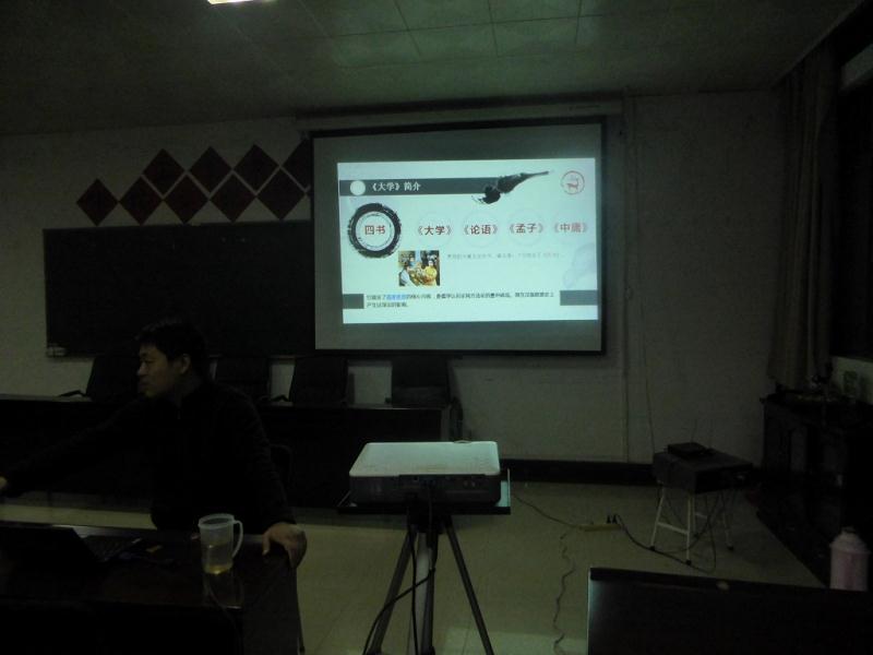 4月15日周五晚6:30,工业中心团总支在B114举办了《‘大学’与大学生学习》讲座,团总支书记傅修远带领40多名同学学习了《大学》的基本思想和部分章节。《大学》是《四书》中最为基础的开篇读物,内含儒家精神的基本思想原则,其中还论述了学习的基本过程,思想整治工作的方法以及做人交友的原则等,对当前大学生的学习生活具有一定的指导意义。本次讲座是我中心传统文化学习班的具体内容之一。