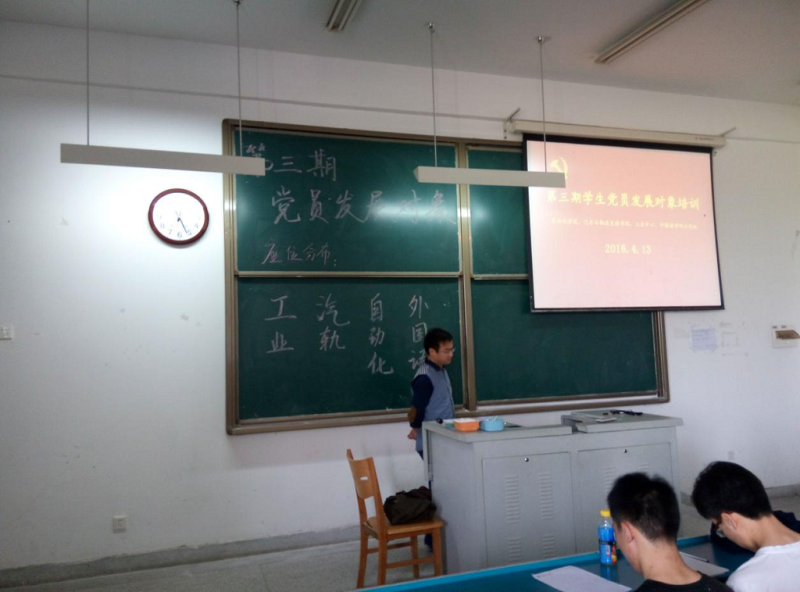 2016年4月20日,为期近两周的学生党员发展对象培训班告一段落,本期培训班分别由周明虎、罗俊、管明清、冯永伟、王灿以及傅修远老师主讲,同学们按时参加学习,他们进一步加深了对党的认识,明确了如何成为一名优秀的大学生党员。