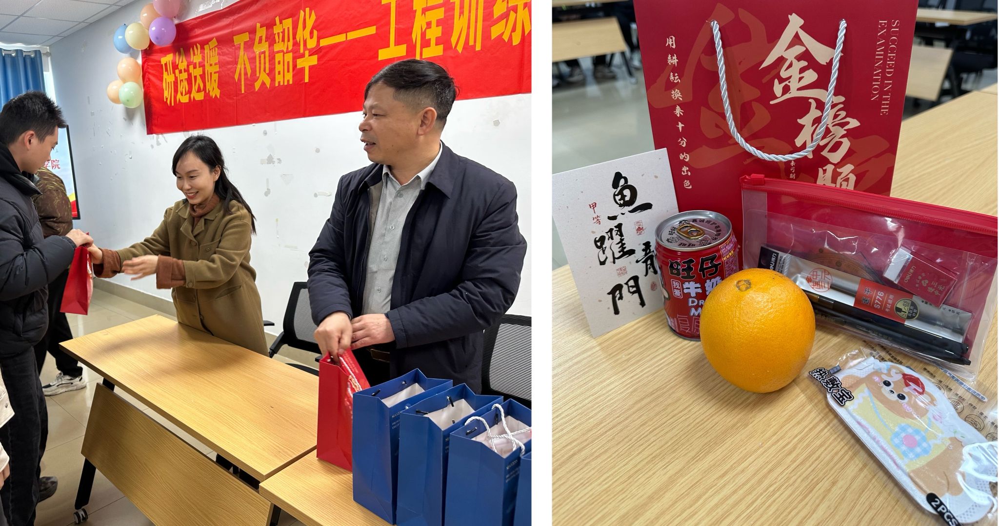 会后,全体老师为考研学生送上“考研助力包”,内含考试文具套装、手写祝福卡片、暖手贴、旺仔牛奶和橙子,寓意“旺”气十足、心想事“橙”。“在备考冲刺的关键时刻,学院送来的礼物如同冬日暖阳,驱散了我们的倦意!我们必将带着这份关爱全力以赴,不负学院的期许,成功奔赴理想彼岸!”D机械221黄鑫在收到助力包后说道。