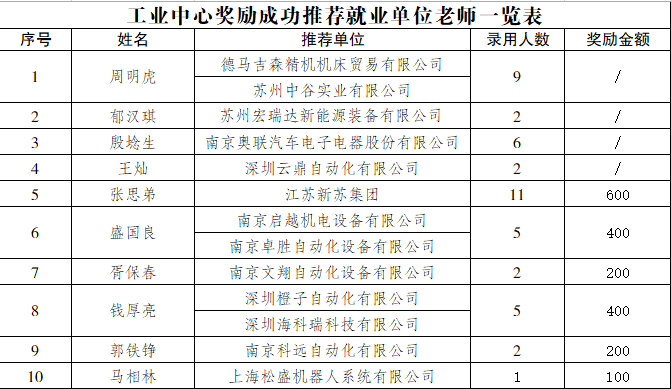 附件:工业中心奖励成功推荐就业单位老师一览表。
