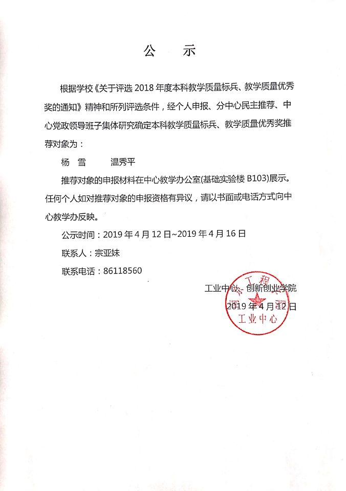 关于校2018-2019学年先进团支部、优秀团员和优秀团干部评选结果的公示