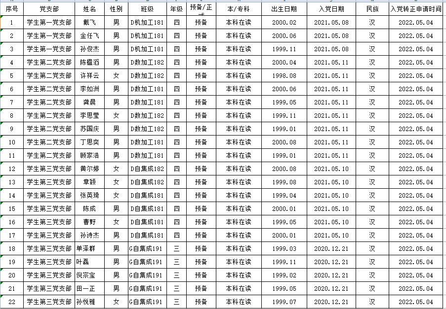 工业中心学生党支部拟于近期讨论戴飞等二十二位同志转为中共正式党员。现将有关情况公示如下: