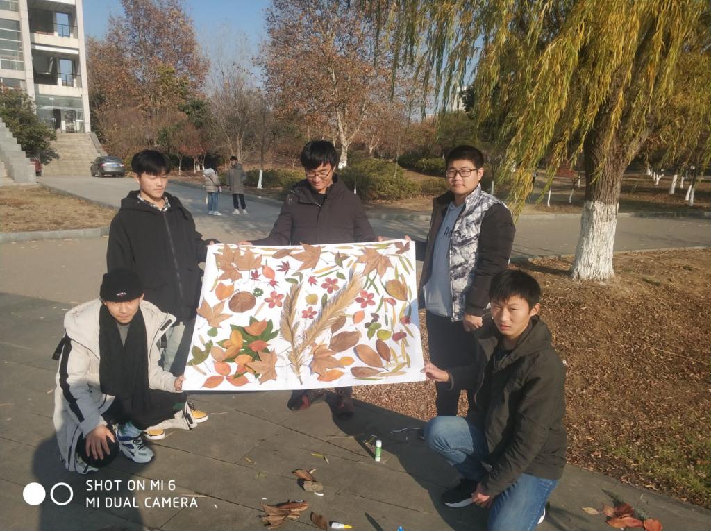 本次活动围绕“放飞大学梦,创想新篇章”这个主题,设置了三个环节,首先是“破冰行动”,主持人为参加活动的同学介绍本次活动内容,让大家先进行自我介绍,现场分组,以团队形式参与活动。其次,在大家对活动流程有了解之后,各组在规定时间内,从校园各处寻得各有特色的树叶,回到指定地点。第三环节也是本次活动最考验大家创意和动手能力的一环,各小组需要齐心协力,用树叶作画,拼贴完成后由小组代表解释图画的含义。